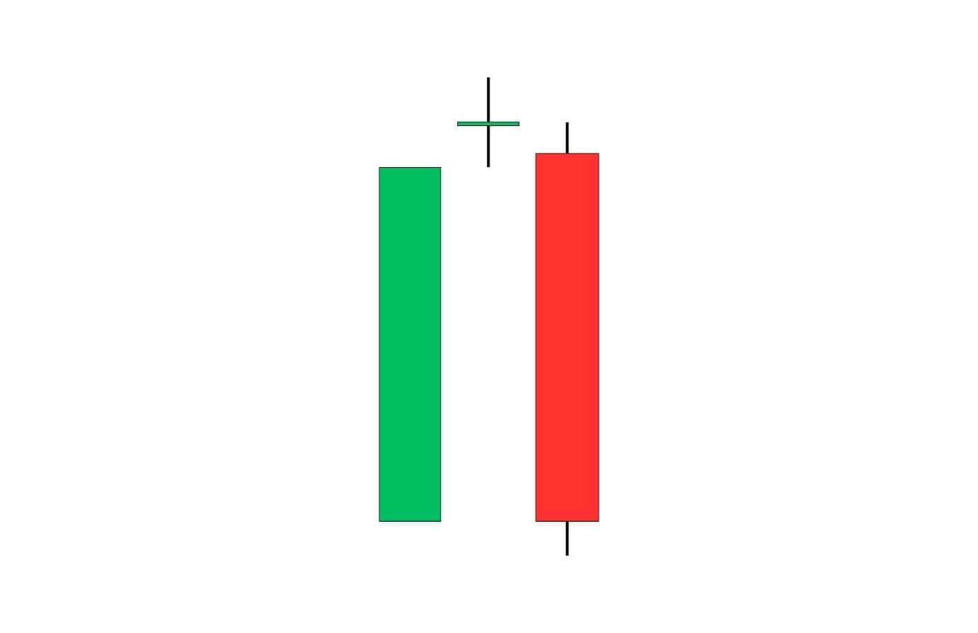 Conversely, if the second candle of the evening star is red – rather than green – it suggests that upward momentum is weakening.